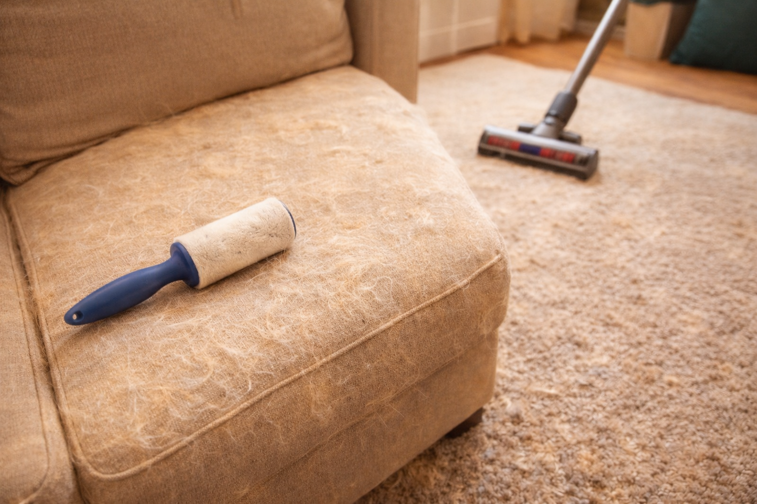 Canapé, tapis, vêtements… les poils s’invitent partout au quotidien.